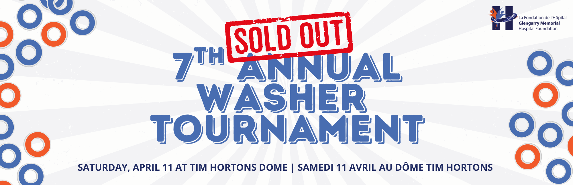 Soutenez la Fondation de l’Hôpital Glengarry Memorial en achetant vos billets pour le prochain tournoi de washers, le 11 avril 2026, au Dôme Tim Hortons.
